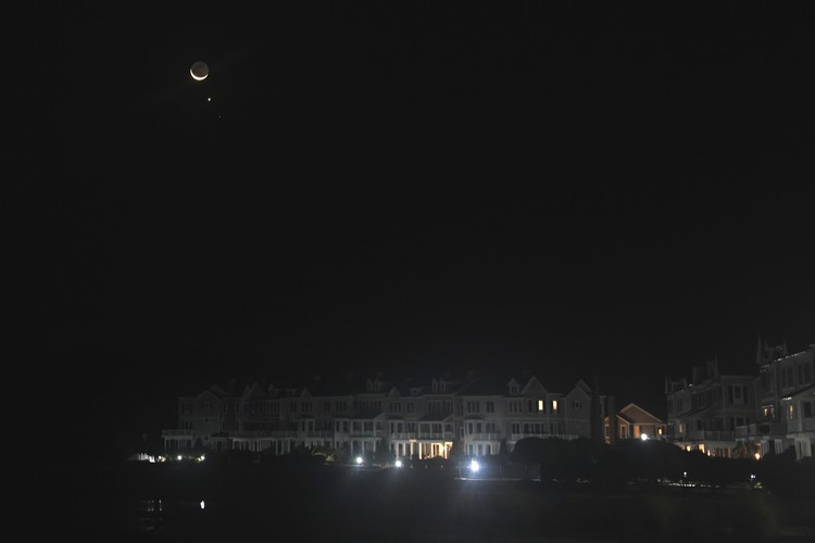 Cresent moon and the planet Venus, and the star Regulus (Alpha Leonis) - Hewitt's Cove, Hingham, Massachusetts